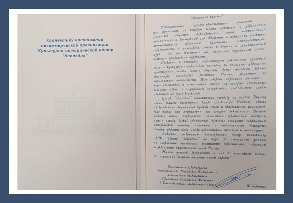 Письмо с поддержкой программы "Православные рубежи России"