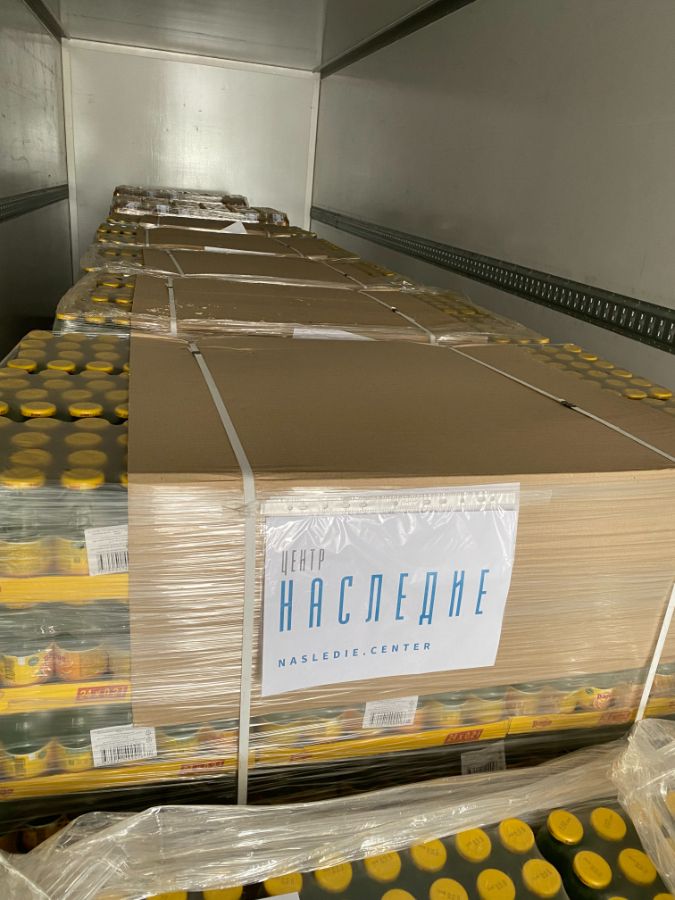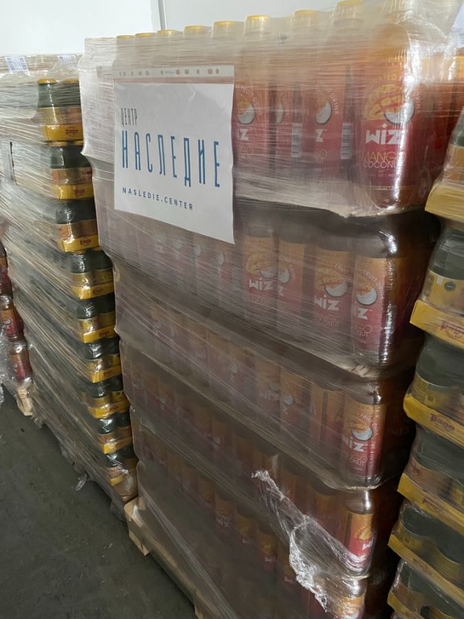 14 июля 2023 года Центром «Наследие» направлена очередная партия питьевой продукции, в состав которой вошли апельсиновые соки «PAGO» 0,2х24 бут в количестве 17,3 тысячи штук и негазированный напиток с соком «WIZ MANGO COCONUT (ВИЗ МАНГО КОКОС)» 0,5х9 pet в количестве 2,6 тысячи штук, общим объемом почти 20 тысяч бутылок.